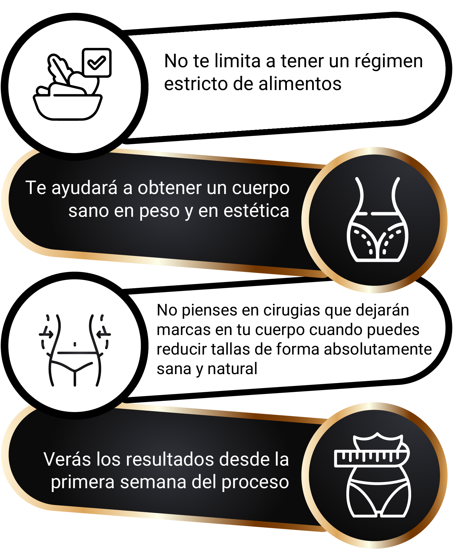 Ayudará a depurar de manera muy rápida las grasas malas del cuerpo depoditas especialmente en los brazos, papada, barriga, cuello, abdomen, cintura en todo el cuerpo en general de manera natural mediante los procesos normales de depuración del cuerpo.
